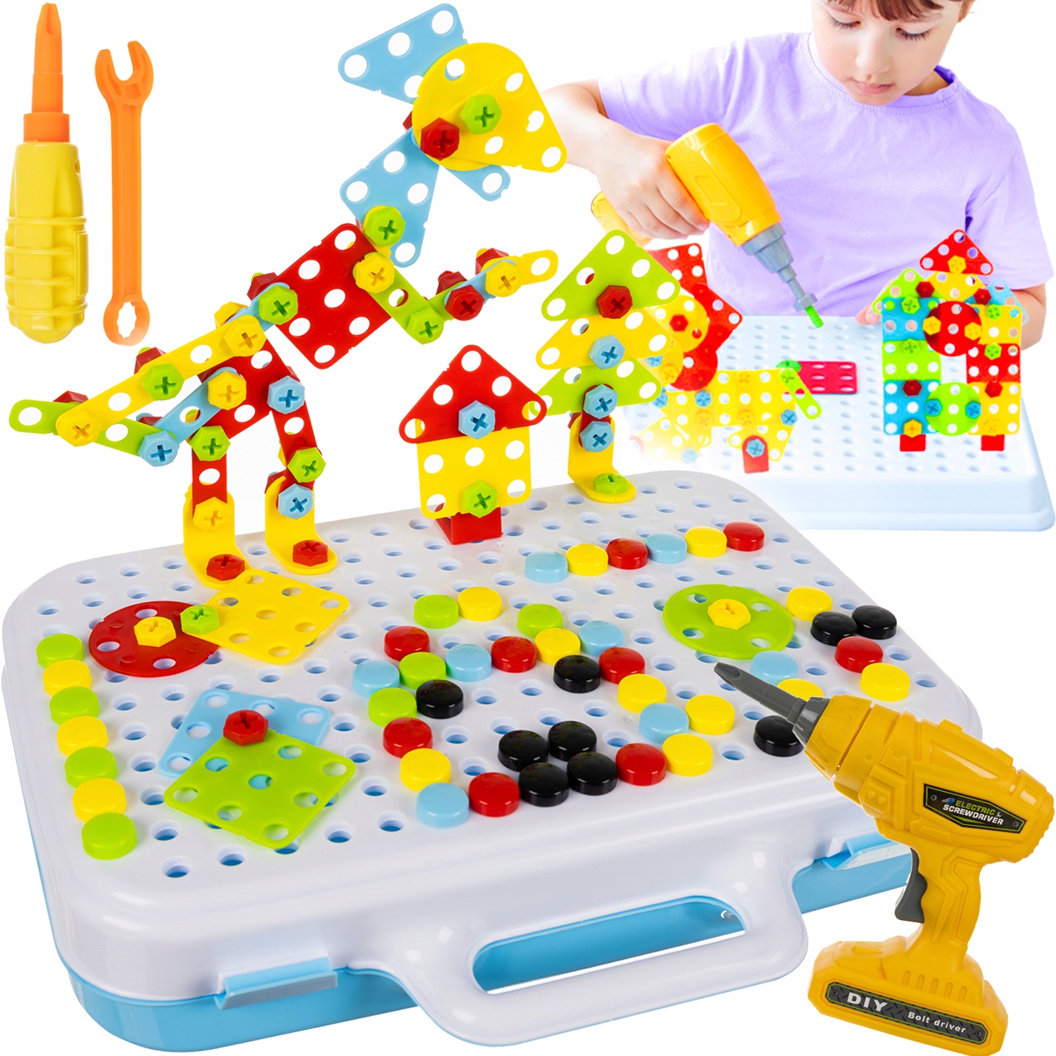 - pozwoli na utworzenie dziecku wielu różnorodnych obrazków, przypadnie do gustu szczególnie majsterkowiczom. Żywe oraz kontrastowe kolory przyciągają uwagę dziecka i zwiększają zainteresowanie zabawką.