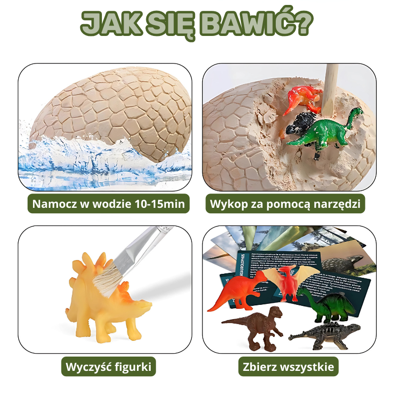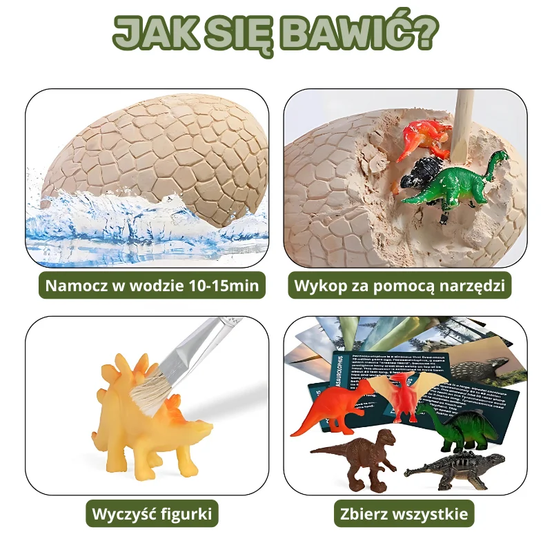Zanurz jajo w wodzie i odkrywaj ukryte w środku dinozaury – aż 12 skamieniałości + 2 niespodzianki!