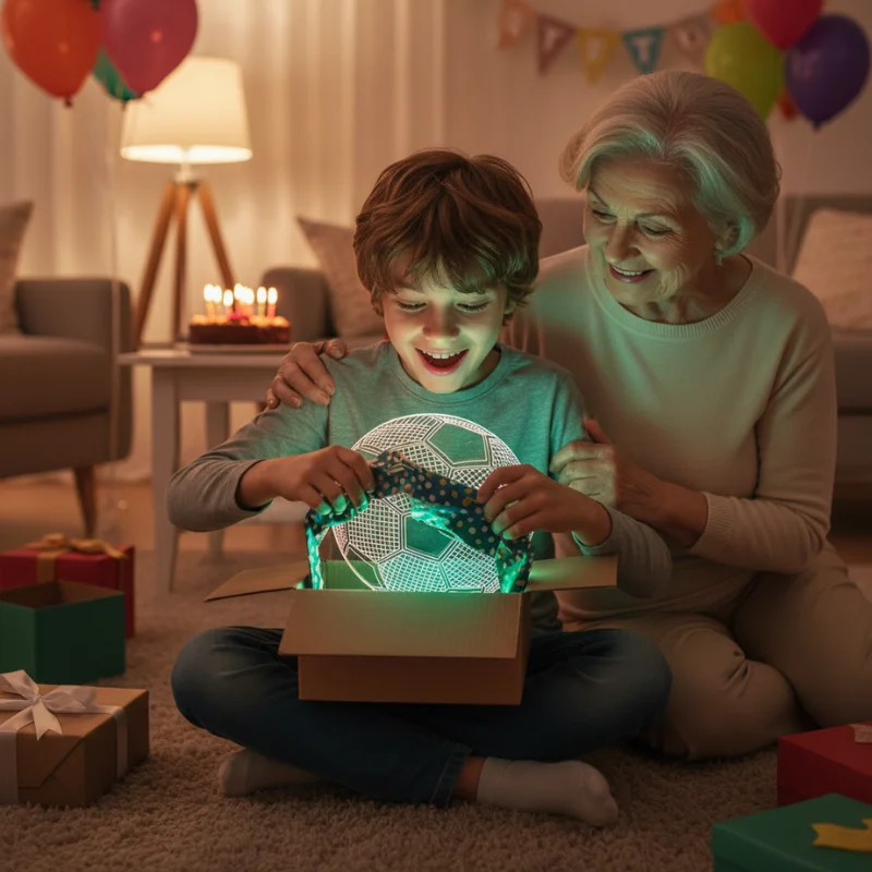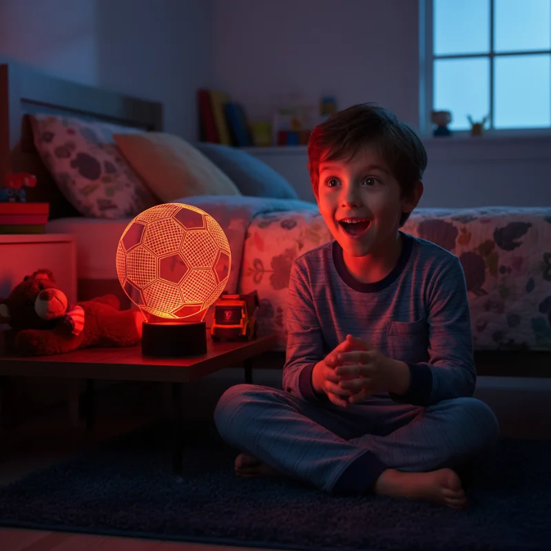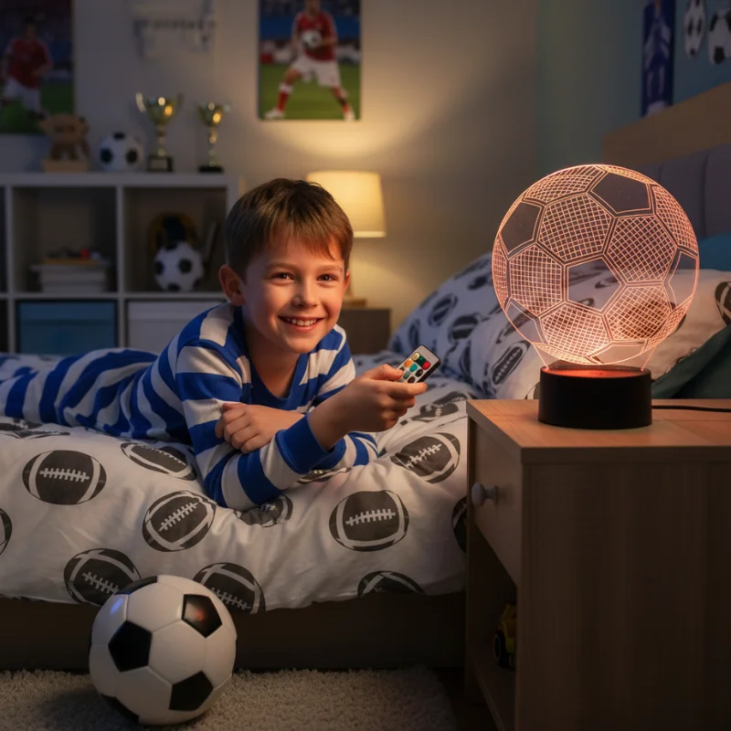 Syn od dawna kocha piłkę nożną, lampka okazała się idealnym dodatkiem do jego pokoju, teraz to jego ulubiona rzecz obok łóżka.