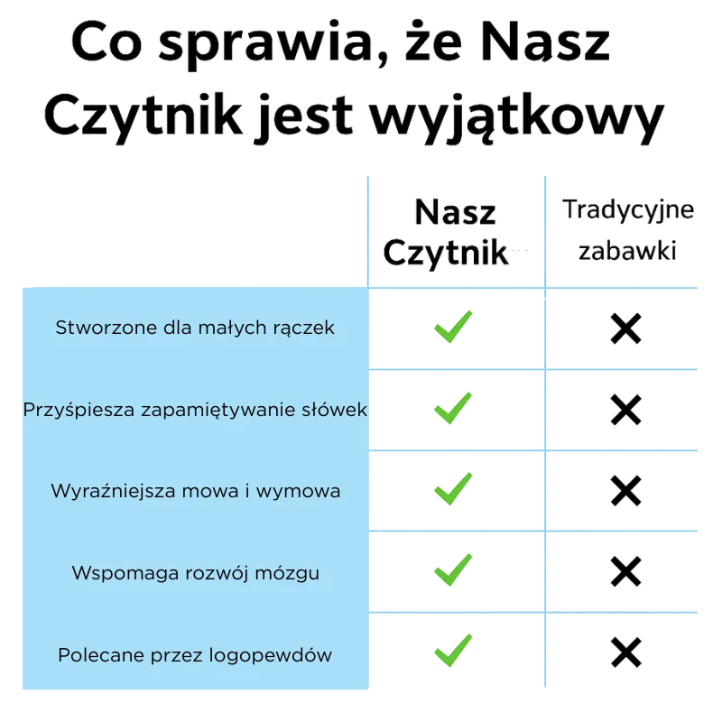 Czytnik zamienia naukę słownictwa w zabawę, która wciąga i utrzymuje uwagę Twojego dziecka na długie godziny.