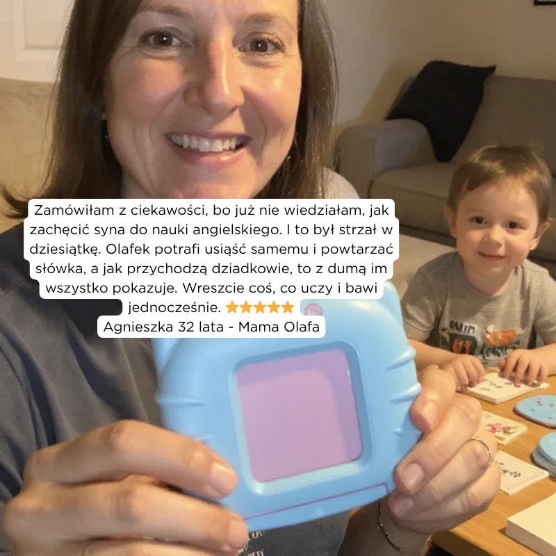 Zdecydowanie tak. Produkt nie ma ekranu, więc nie męczy oczu i nie rozprasza dziecka. Uczy w sposób aktywny, angażując wzrok, słuch i dotyk – to dużo zdrowsza forma nauki niż aplikacje mobilne.