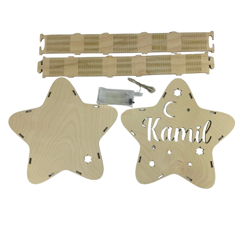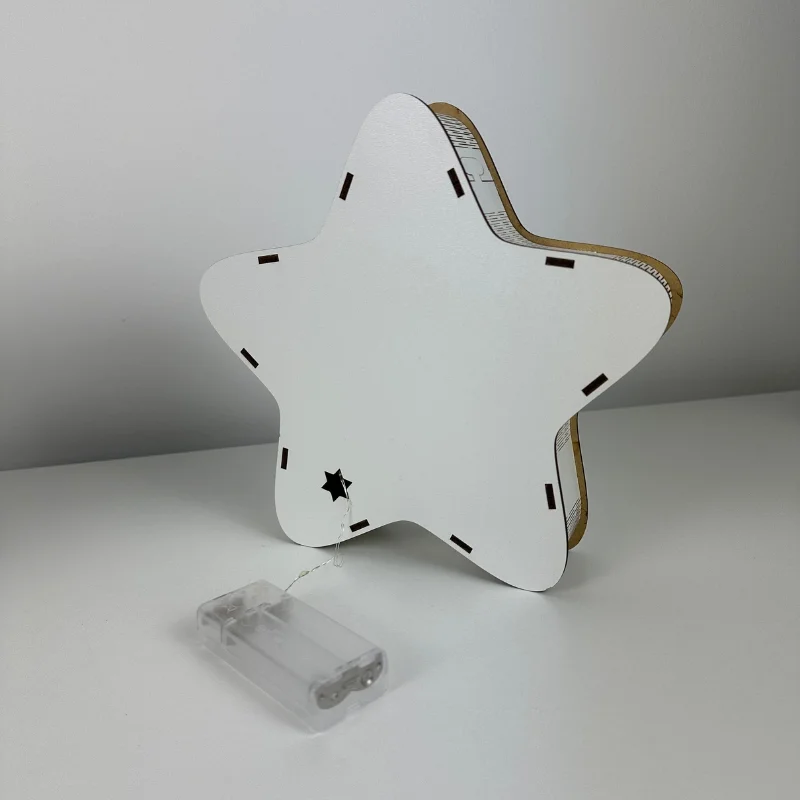 Lampki są wycinane z naturalnej sklejki/HDF, bezpiecznej dla dzieci i trwałej w użytkowaniu.