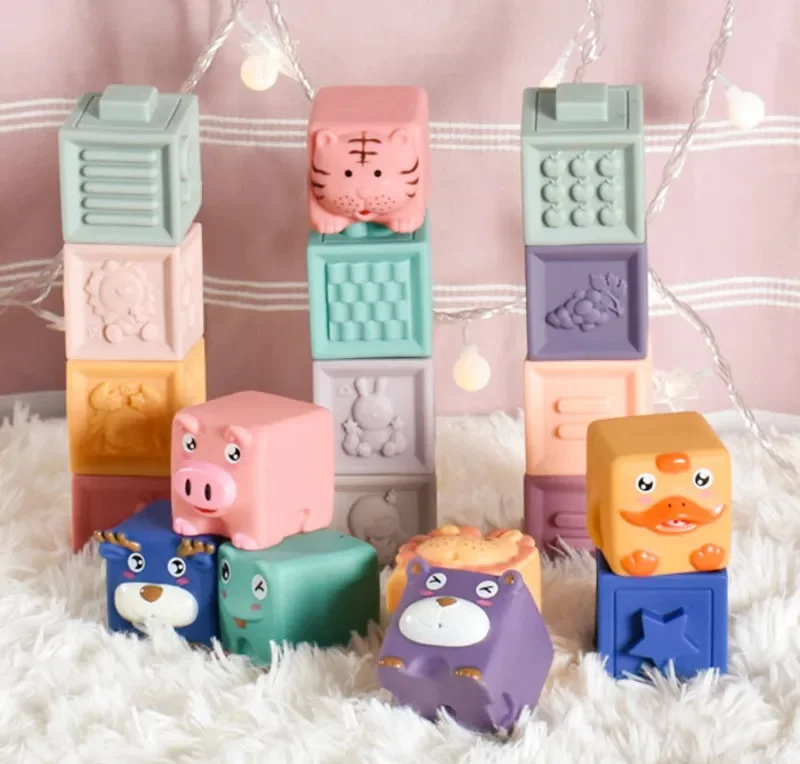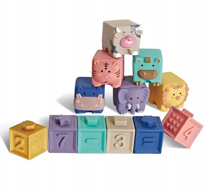Klocki sensoryczne 6 szt normalnych i 6 szt zwierzątek