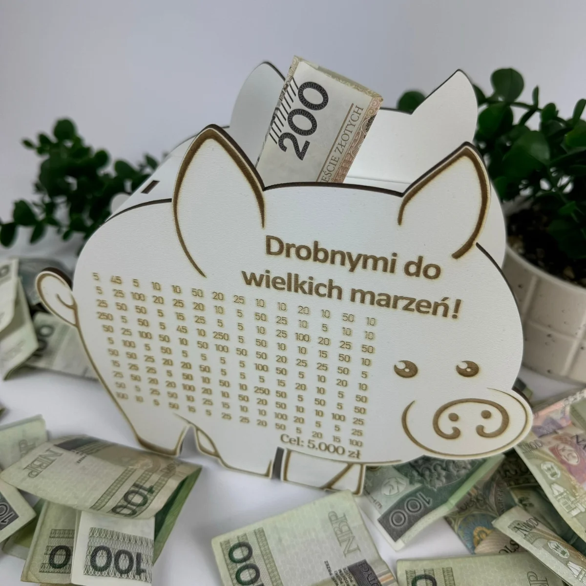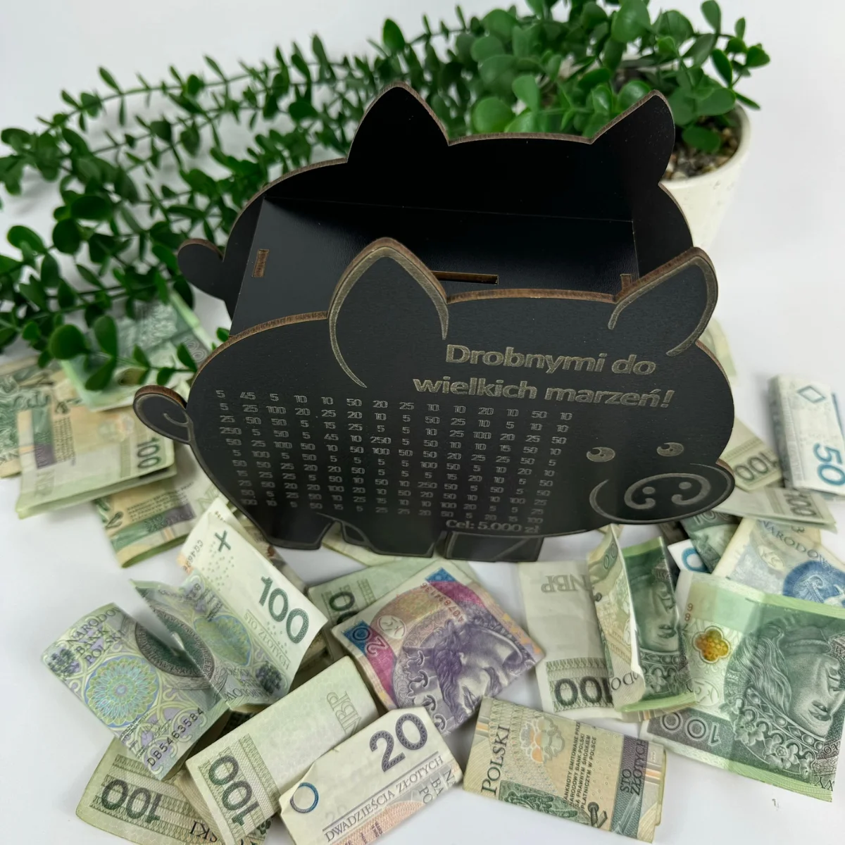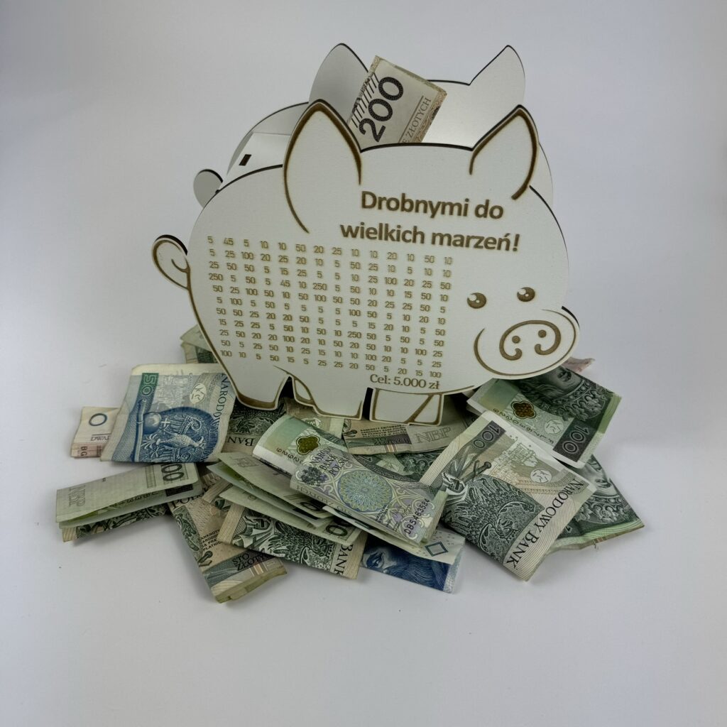 Jeśli potrzebujesz jesteśmy w stanie wygrawerować większą kwotę, lecz do skarbonki tyle nie wejdzie 🙂