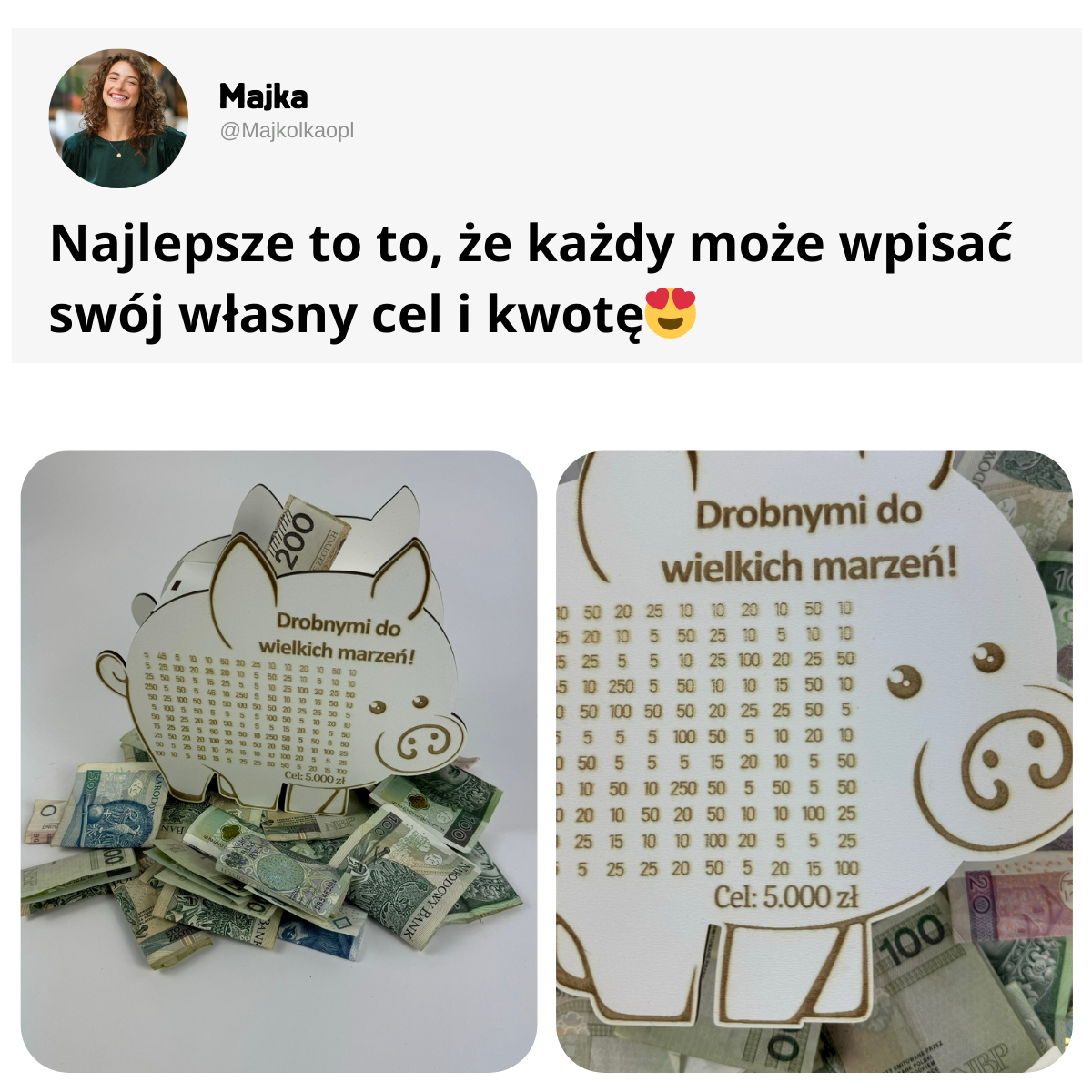 ✅ Personalizowany cel i kwota na skarbonce